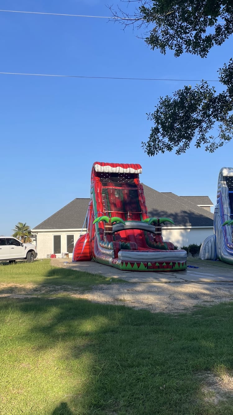 This huge 24ft double lane water slide makes for perfect summer time parties for all! Kids and adults alike will have a great time playing on this slide during those hot Mississippi days!